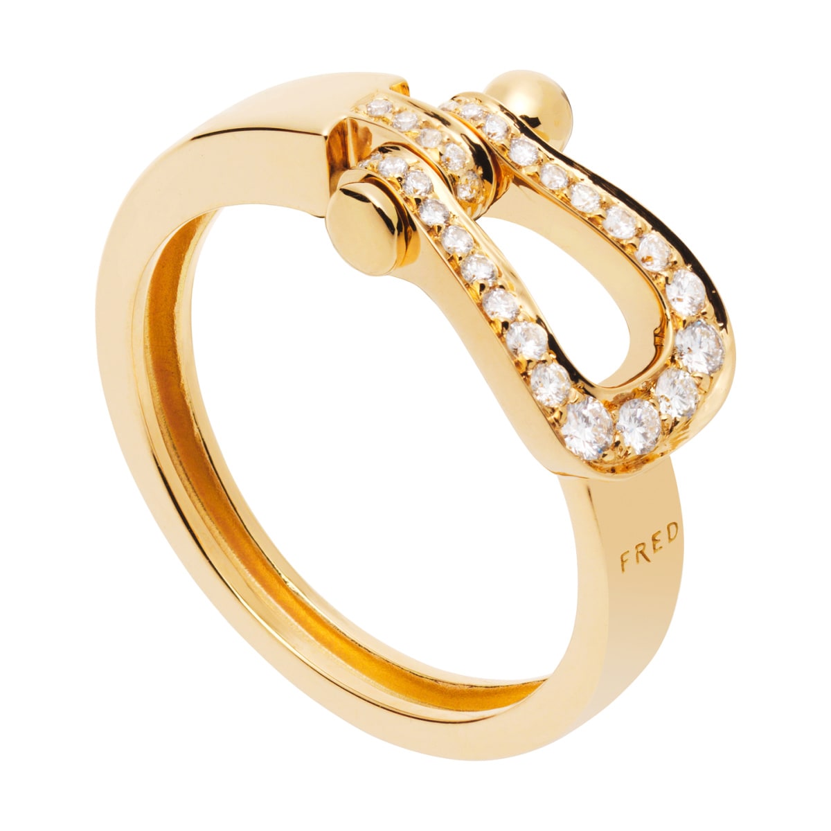 Bague Force 10 moyen modèle en or jaune et diamants blancs.