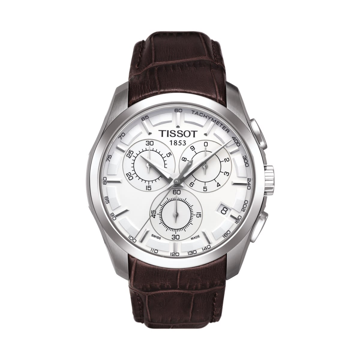 Inspirée du monde de la mode, la Tissot Couturier est une montre élégante qui reflète une attention sans compromis au détail. Son mouvement quartz de fabrication suisse abrite une boîte en acier inoxydable protégée par une glace saphir inrayable garantissant robustesse et lisibilité. La montre possède un bracelet en cuir marron et une fonction chronographe.