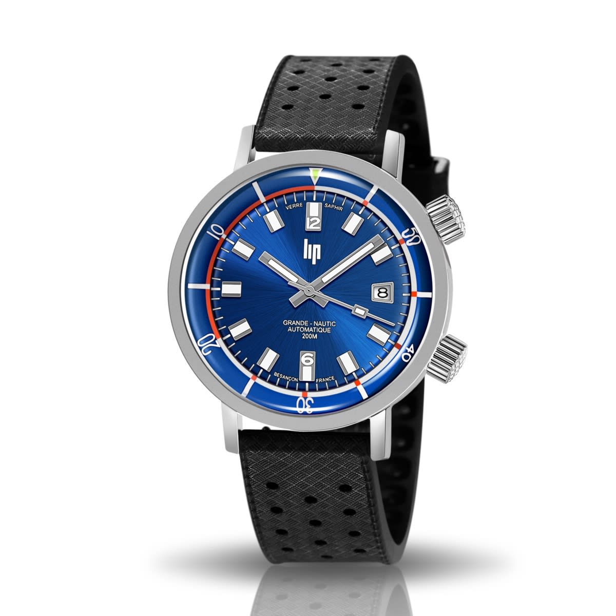 La célèbre montre de plongée “Nautic-Ski” est proposée en 1967 pour le centenaire de Lip. Cette jolie montre est véritablement lancée pour les jeux Olympiques de Grenoble en 1968. C’est la première montre française réellement étanche à 200 mètres. Plusieurs versions seront commercialisées dont certaines pour la clientèle féminine, telle la “Marie Curie”, pour remercier cette grande dame pour les innovations qu’elle a apportées à l’horlogerie moderne.