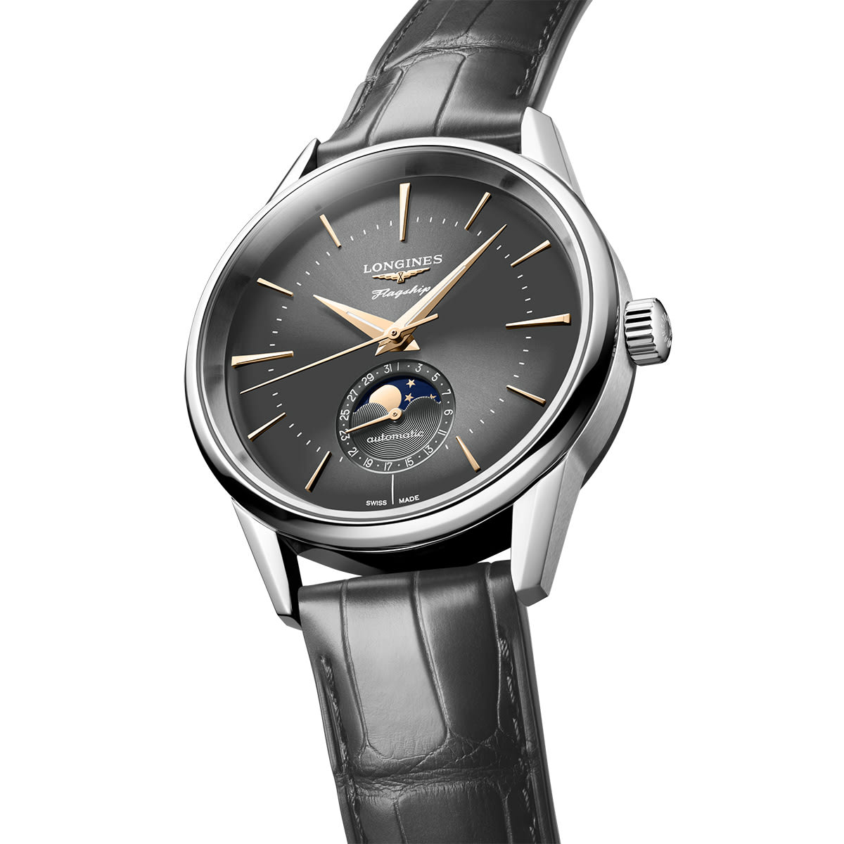 Montre LONGINES FLAGSHIP HERITAGE MOONPHASE Sunray anthracite